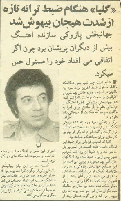 گلپا از شوق ضبط ترانه جدیدش دارد که به نقل از موسیقی ایرانیان و صفحه شخصی این